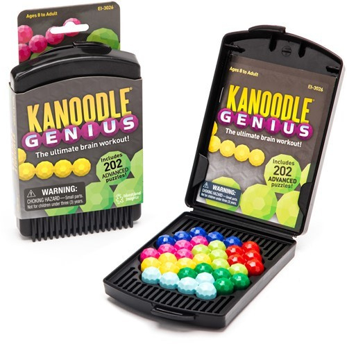 Als je van het Kanoodle®-spel houdt, zul je het Kanoodle Genius-spel geweldig vinden. Deze draagbare, solo-speelactiviteit zit boordevol meer dan 200 hersenkrakende 2D- en 3D-logische puzzelgames voor 8-jarigen en ouder. Het is zo leuk, volwassenen zullen er ook dol op zijn!