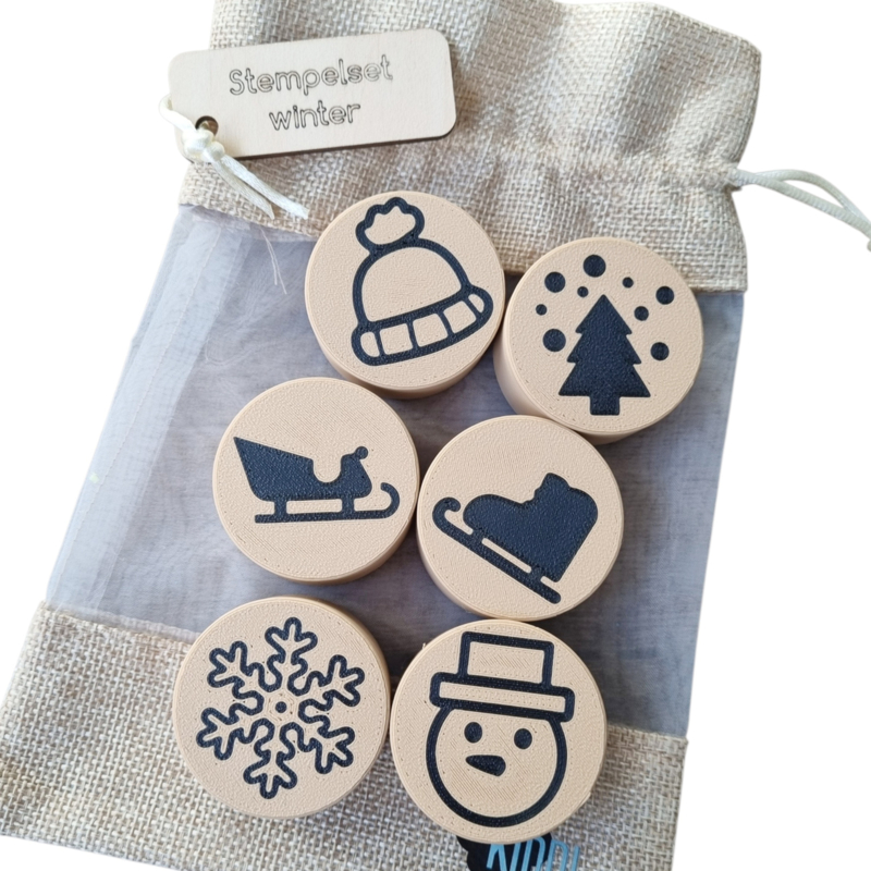 Ontdek deze stoere en robuuste stempelset in het thema winter – ideaal voor open-ended play, klei en sensorisch spel.